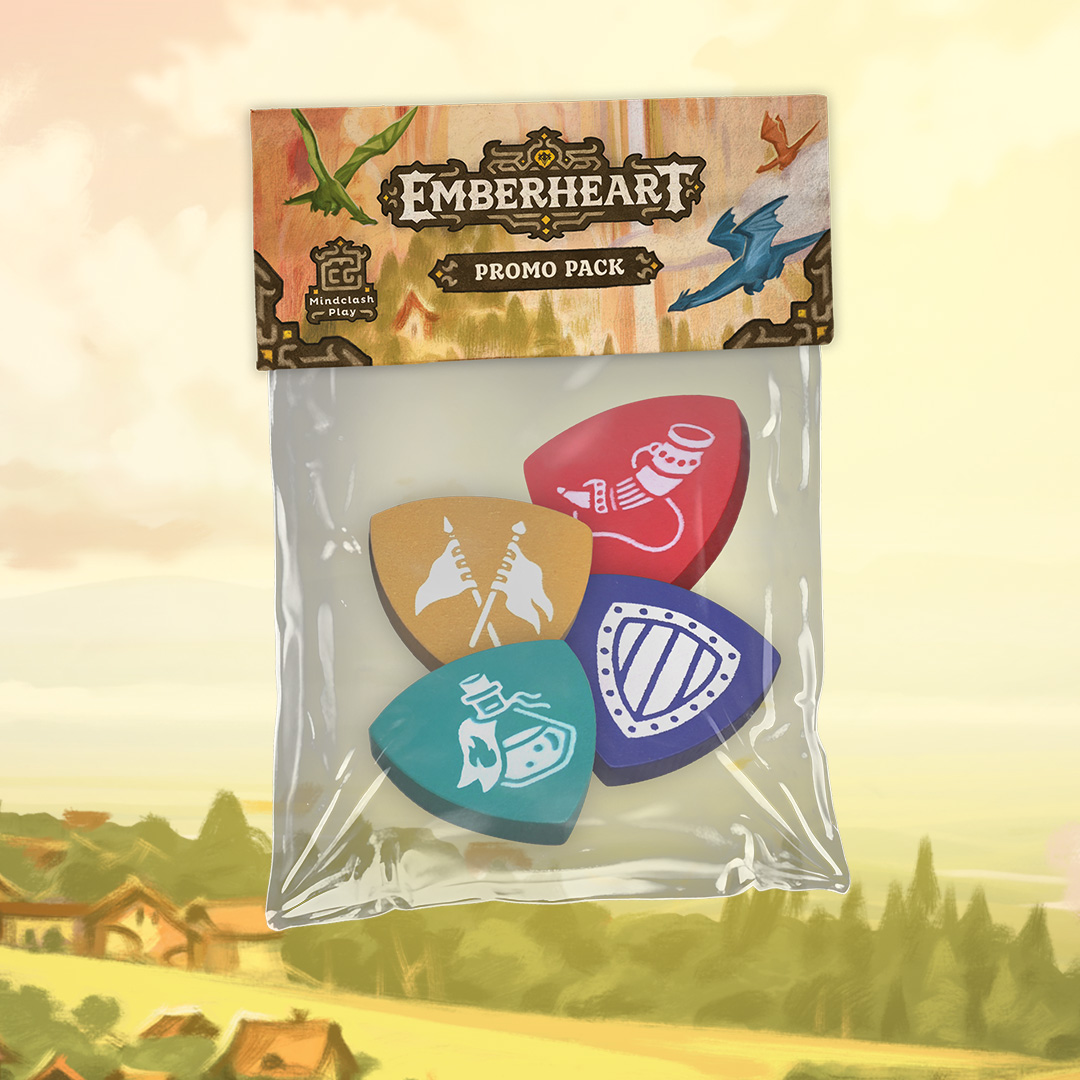 The Promo pack includes 4 silkscreen-printed wooden tokens that replace the cardboard Aidee tokens from the game.